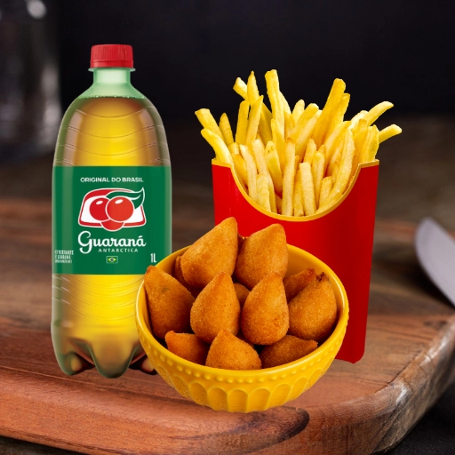 50 Salgados + 400g de Batata + 1 Refrigerante Antarctica 1l