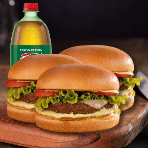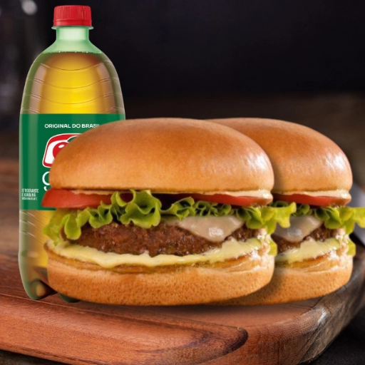 2 hambúrguer + 300g batata simples +refrigerante guarana antarcta 1l