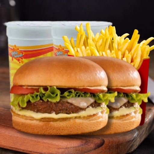2 x burguer + 300g de batata simples + 2 guaraplus